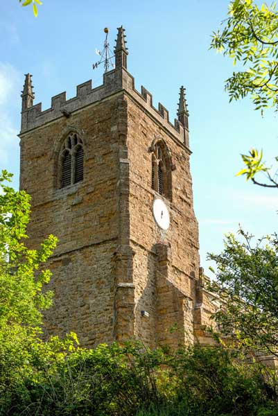 Stone cottages and All Saints Church